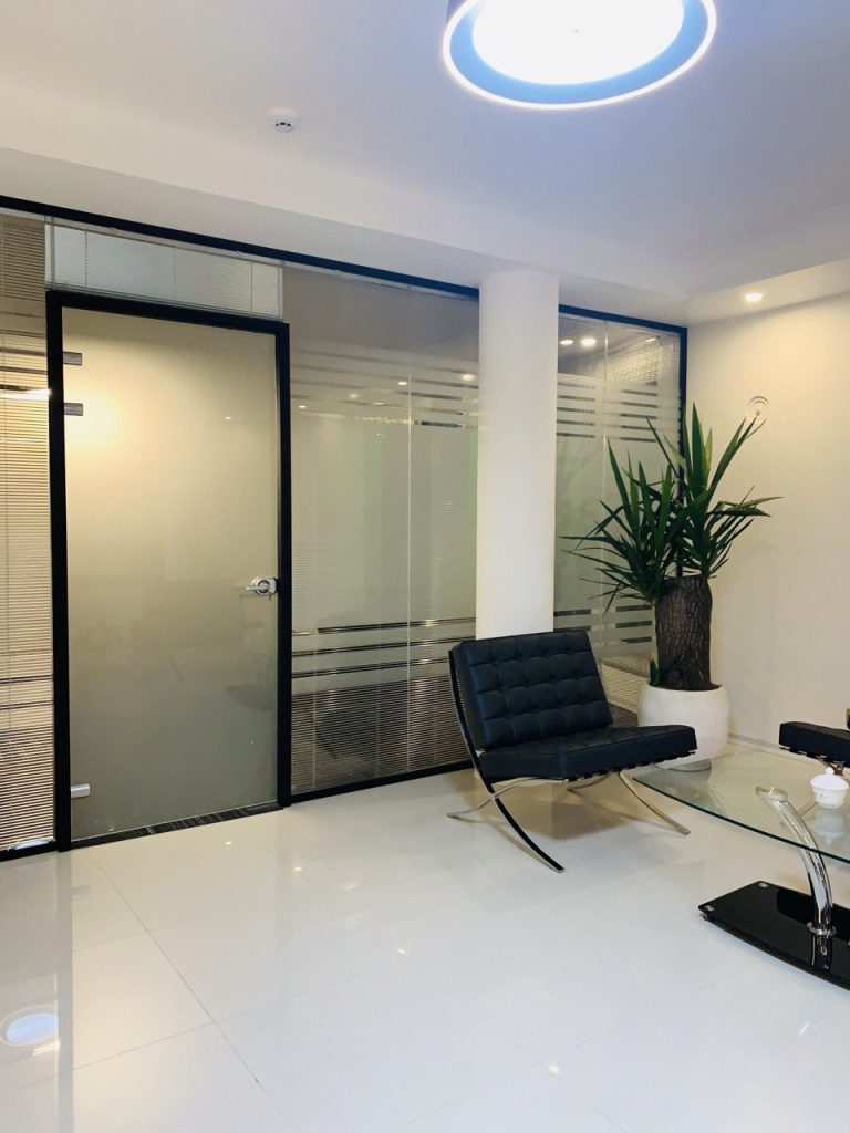 - پارتیشن های شیشهای با درب کشویی اتوماتیک برای دفاتر مدیریتی